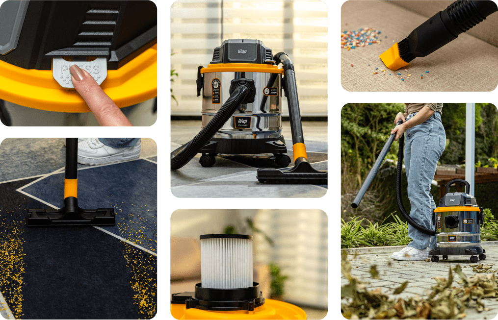 Ter um aspirador de água e pó potente, que oferece mobilidade e desempenho profissional, faz toda a diferença, independentemente do tipo de limpeza. Remova a sujeira, tanto em espaços internos quanto externos, com um parceiro completo.