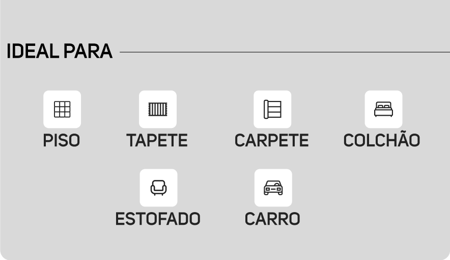 Além de extrair até 4cm* de impurezas em estofados, é um aspirador de água e pó, que pode ser usado para remoção de sujeiras sólidas e líquidas de várias superfícies. Dispõe de recipiente externo removível para água limpa e recipiente interno para água suja.